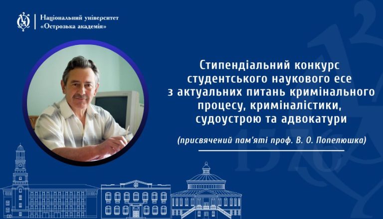 Кафедра кримінально-правових дисциплін імені Василя Попелюшка Національного університету «Острозька академія» запрошує до студентського конкурсу наукового есе з актуальних питань кримінального процесу, криміналістики, судоустрою та адвокатури…